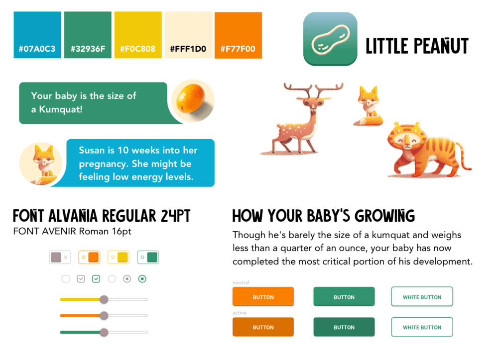 Even though this app is about babies and amusing facts, it is still full of important and reliable information, hence the choice of this illustration style and these specific fonts.